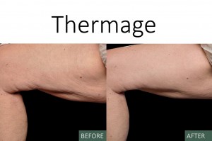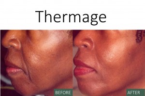 Thermage is used to reduce forehead wrinkles and lines near your mouth and eyes. Thermage helps tighten up loose skin - especially under your chin or around your neck. Thermage also helps improve heavy eye lids and can plump and contour lips.
