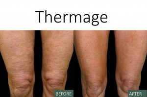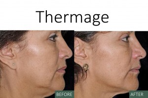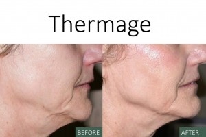 Thermage is used to reduce forehead wrinkles and lines near your mouth and eyes. Thermage helps tighten up loose skin - especially under your chin or around your neck. Thermage also helps improve heavy eye lids and can plump and contour lips.